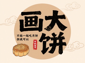 中式感国潮风,大字鎏金点缀,传统印章衬托,尽显中秋佳节韵味。