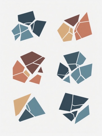 一组4个不同配色、不同样式、不同材质的「奔跑动作」元素,采用低多边形几何破碎风格,每个奔跑人物由尖锐的三角形和多边形碎片构成,呈现动态的破碎飞溅效果,肢体姿态充满向前的爆发力,整体设计简洁干净,线条利落,符合现实人体运动逻辑,适用于素材使用,背景为纯白色。