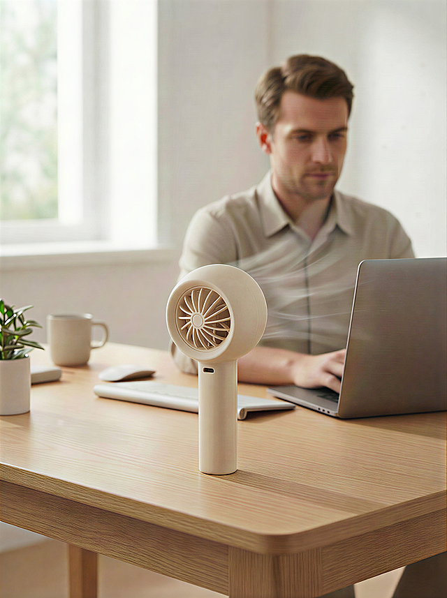 保留原图中的台式小风扇主体,去掉图片中所有文字文案,保留原背景,保持原图的构图、光影和风扇的颜色质感不变,确保风扇轮廓清晰自然,修复去除文字后留下的背景瑕疵,保持整体画面协调一致详情