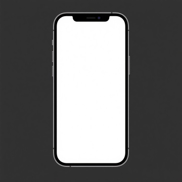一个现代智能手机的3D渲染图,采用极简风格设计,主体为黑色边框与银色底部边框的组合,正面是纯白色无任何内容的屏幕,屏幕顶部有一个黑色的刘海设计。手机以略微倾斜的角度展示,呈现出一定的立体感和空间感。整体画面干净利落,背景为纯白色,没有任何多余元素干扰主体。线条流畅,边缘锐利,体现出科技产品的精致感和现代感。光影处理简洁,主要通过边框的明暗对比来增强立体感,没有复杂的阴影效果。