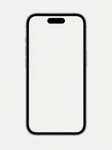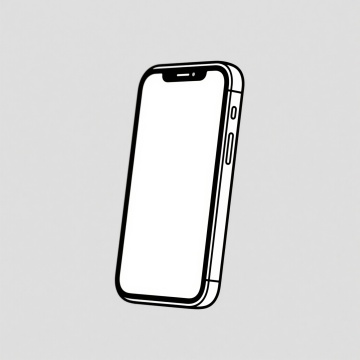 一个现代智能手机的正面视图,采用极简的线条艺术风格,黑色细轮廓勾勒出手机的圆角矩形机身,屏幕为纯白色,顶部中央有一个小的黑色刘海区域,包含前置摄像头开孔,机身侧面有简单的按键线条,整体构图简洁、对称,背景为纯白色,呈现出干净、简约、科技感的视觉效果,没有任何多余的装饰元素和文字信息。