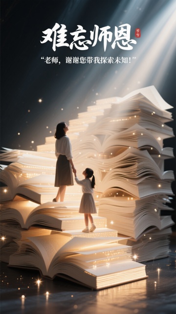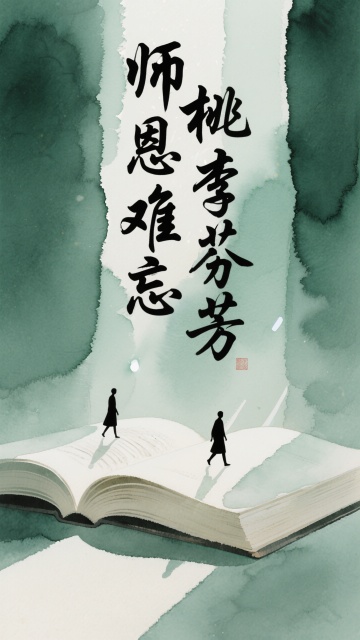 古典中式插画风,水墨渲染,文艺气息浓厚,致敬教师节。