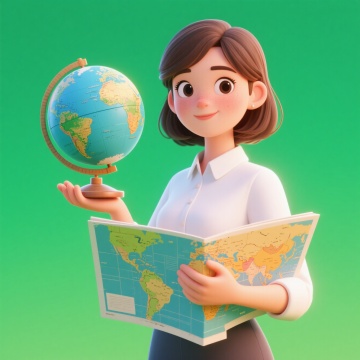 🌍白衣女教师持地图地球仪,绿背景超美😍