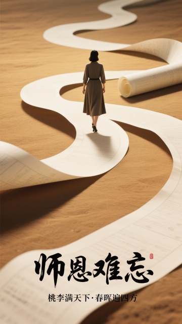 古典水墨风插画,师恩难忘大字突出,教师节主题,意境深远。