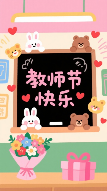 云朵化作 “教师节快乐”,书本、粉笔、小黑板从云中洒落,似知识的甘霖,感恩师者用爱与智慧,为梦想插上翅膀。