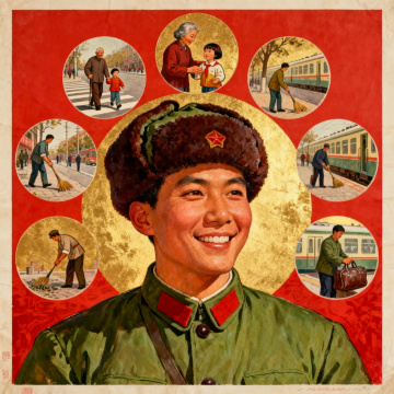 鲁迅,穿着藏蓝色长衫,深夜在家伏案工作,桌上燃烧着蜡烛,窗外月亮挂在天上,版画风格,线条粗犷有力,黑白对比强烈,带有复古质感,细致线条刻画细节与黑白灰关系,密集线条呈现印刷感,精致凹版印刷线条表现明暗关系,灰色网点印刷背景