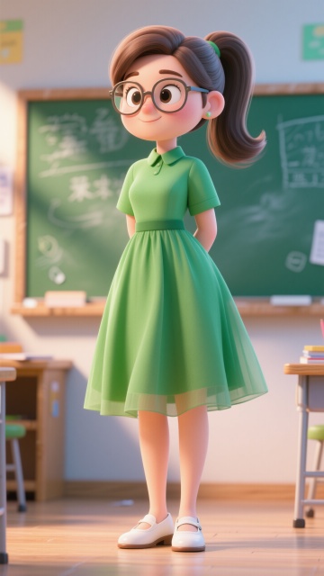 软3D风卡通教师,清新教室环境,温馨书写瞬间。