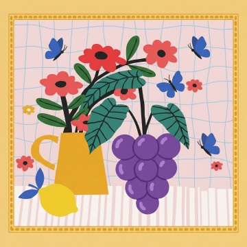 手绘插画风,六个不同配色、不同样式、不同材质的葡萄造型,上下两行对齐排列,浅色背景。整体采用圆润可爱的卡通风格,线条简洁流畅,色彩明快鲜亮。每串葡萄都有独特的颜色搭配,如深紫配浅紫、翠绿配淡绿、酒红配粉红、金黄配浅黄、靛蓝配天蓝、橙红配橙黄等。葡萄果实饱满圆润,表面有高光点缀,呈现出不同的材质感,有的光滑如釉质,有的带有细微绒毛,有的半透明似果冻,有的带磨砂质感,有的有糖霜效果,有的则像晶莹剔透的宝石。每串葡萄都带有绿色的叶子和棕色的藤蔓,叶子边缘有简单的锯齿,叶脉清晰可见。整体构图平衡,葡萄串大小略有变化,避免单调,所有元素在浅色背景上显得清新明快,充满童趣和活力。