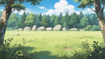 清新动漫风,虚拟自然场景,绿意盎然,阳光明媚,营造宁静和谐氛围。