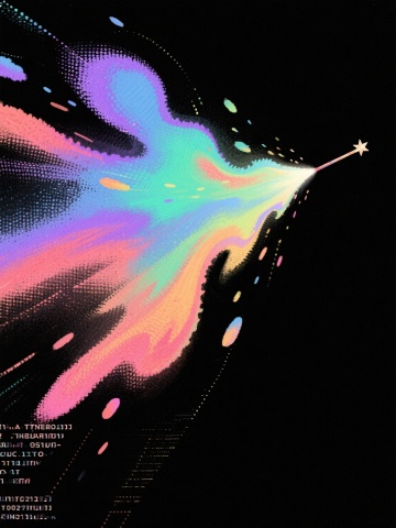 一幅抽象艺术作品,画面中心由多条色彩鲜明的倾斜色带构成,主色调为明亮的黄色、鲜艳的蓝色、热烈的橙色和明快的粉色,色带边缘带有自然的毛边效果。色彩间有部分重叠和交融,形成丰富的视觉层次。画面中散布着许多细小的彩色飞溅斑点,主要为红色和橙色,随机分布在色带周围和背景中,增强了动感和活力。整体构图呈现出一种动态的、奔放的视觉效果,色彩对比强烈且和谐。改变质感为细腻的磨砂质感,色彩过渡更加柔和,色带边缘呈现轻微的模糊渐变效果,飞溅斑点带有细微的颗粒感,整体画面在保持原有色彩和构图的基础上,展现出一种温润、内敛而不失活力的磨砂材质特性。