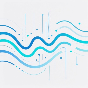 白色背景上,由多种不同形态的科技感线条构成的抽象图案,包括波浪状曲线、垂直的直线以及点缀其间的点状元素,线条呈现出蓝色、青色、浅蓝色等多种不同颜色,整体风格简洁现代,充满未来科技感,线条流畅且富有动感,各元素之间层次分明,营造出轻盈而富有韵律的视觉效果。