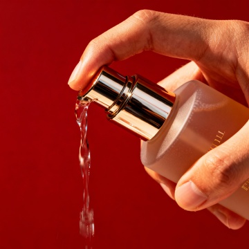 奢华感与优雅感交织,3D重拟物风设计,简约主义玻璃瓶身搭配金属喷头,面料风丝巾点缀,尽显高端质感。
