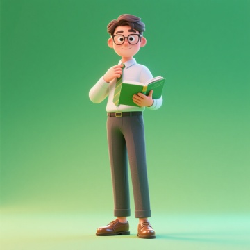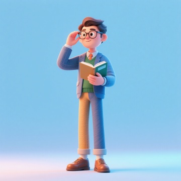 卡通感十足的软3D风设计,人物手持书本,表情生动,背景简洁清新。