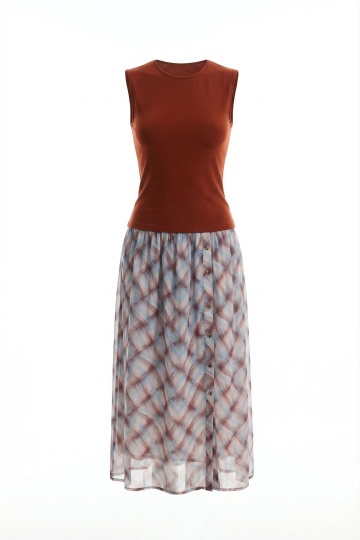 美式复古风搭配,棕色麂皮夹克与格纹裙交织优雅与文艺感,皮革贝雷帽与绒面托特包强化复古质感,整体造型时尚而富有层次。