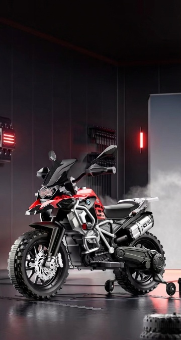科技感十足的3D风摩托车模型,微缩艺术展现精密细节,未来设计感强烈。