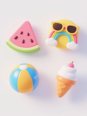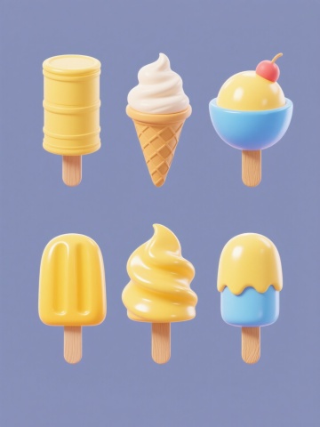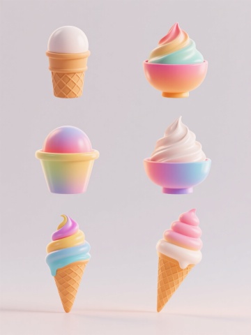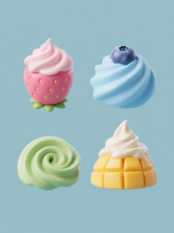 清新3D风格,轻拟物与液态风结合,展现夏日冰爽水果与冰淇淋的视觉盛宴。