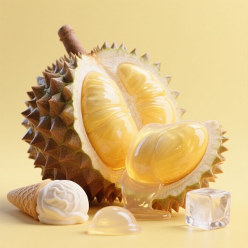 3D轻拟物风设计,清新感十足的榴莲与冰淇淋结合,视觉效果生动逼真。