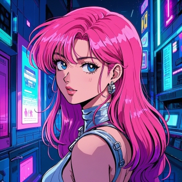 赛博朋克风未来都市,霓虹灯闪烁,科技感十足,机能风少女引领潮流。
