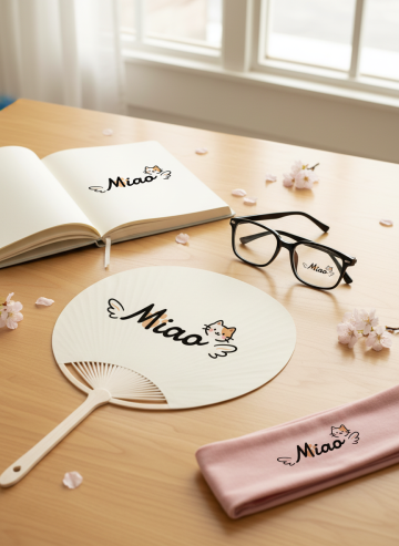清新简约风格,轻拟物风设计,以“miao wu”为主题,展现日常用品的温馨与创意。