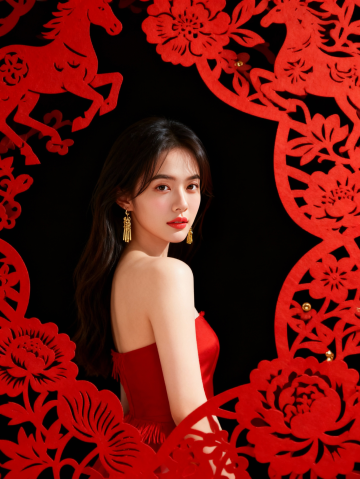 红白双色设计,优雅时尚感十足,简约背景突出人物魅力。