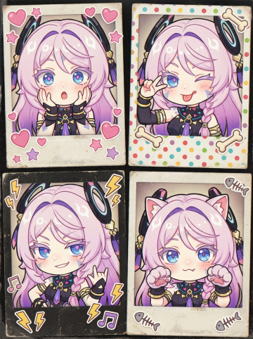 保持人物主体不变,创作一组表情包,包含表情不同、姿势不同的九宫格表情包,动漫风格