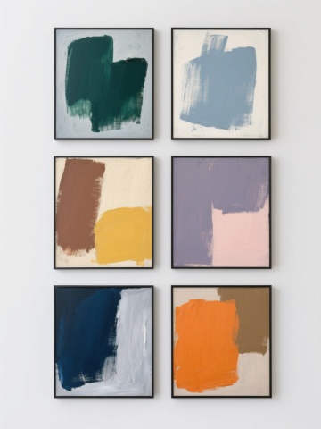 实景感与油画风交融,现代美术馆中光影交织,文艺气息弥漫,人物与画作形成镜像对话,展现当代艺术的深邃意境。
