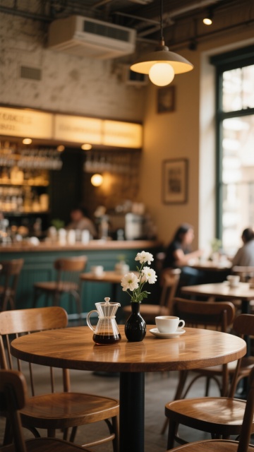 俯瞰视角,极简主义风格客厅以深邃的墨黑与温润的原木色为基调,倾斜45度的构图展现出几何切割般的空间层次感。清晨的冷蓝色光线从整面无框玻璃墙斜射而入,在深灰色微水泥地面上投下窗格的几何阴影,窗外是被薄雾笼罩的城市天际线剪影。中央悬浮着一个由黑色金属框架与烟熏玻璃台面构成的不规则多边形茶几,周围环绕着三张浅灰色模块式布艺单人沙发,每个沙发配有一个芥末黄皮质靠垫。右侧墙面是整面的胡桃木饰面板,内嵌线性LED灯带勾勒出隐藏式储物空间的轮廓。天花板采用悬浮式设计,中央垂挂着一个由12个不规则玻璃球体组成的艺术吊灯,在地面投射出破碎的光斑图案。空间角落摆放着一株大型琴叶榕,其深绿色叶片与整体冷色调形成鲜明对比。地面铺设着一块巨大的米白色羊毛手工编织地毯,边缘处有渐变的黑色几何图案。整体氛围呈现出一种冷静的奢华感,光线在不同材质间的反射创造出丰富的视觉层次,既保留了原空间的通透感,又通过色彩与光影的转变赋予其北欧极简的清冷美学。