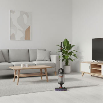 现代简约风格,舒适客厅场景,风扇设计流畅,营造温馨氛围。