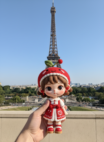 我的同款AI小女孩!清新实景与卡通动漫结合,轻拟物风设计,夏日泳池边的时尚与童趣