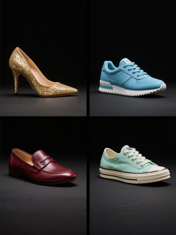 穿着裙子的亚洲模特优雅的坐着,穿图片鞋子,脚部特写,时尚大片质感,影棚拍摄,高清画质场,背景为深灰色颗粒质感画布