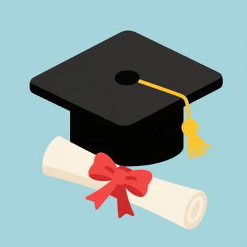 可爱孩童身着毕业礼服,插画风设计,现代清新,轻拟物质感,庆祝毕业时刻。