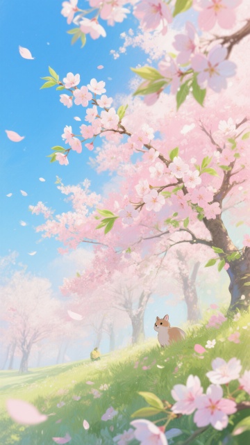 梦幻3D场景,樱花环绕,飞鸟掠过,超现实主义风格,清新唯美,营造浪漫氛围。#七夕浪漫企划