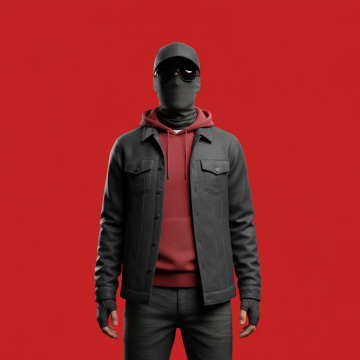 一个白色幽灵面具,黑色兜帽,从正面、左侧面45度、右侧面45度、顶部俯视、底部仰视五个不同角度展示,面具表面光滑无瑕疵,兜帽布料质感柔软,光影立体感强烈,材质明暗关系清晰,整体亮度适中,背景为纯白色