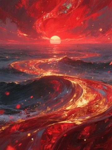 明亮金色光芒的圆月悬挂在画面上方,全景大地上,一辆复古马车行驶在古色古香的建筑群间,旁边一列现代化动车穿梭在繁华的城市之中,白鸽成群结队地从空中飞过,画面带有发光效果,整体充斥着华丽的金色和喜庆的红色,充满奇幻色彩和光影变化,具有丰富的层次感和立体感,体现繁荣昌盛的喜庆氛围,采用梦幻的大透视构图