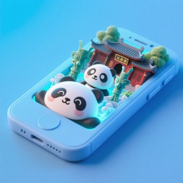 软3D风微缩艺术,熊猫与中式建筑在手机屏中萌趣互动,粘土质感融合卡通元素,展现东方美学与科技的可爱碰撞。