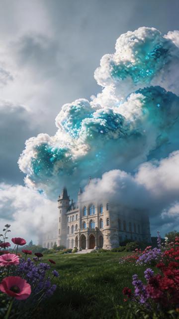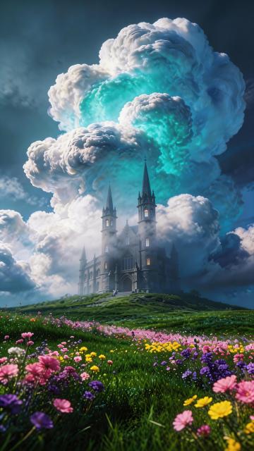 暴雨将至的黄昏,在一片被墨绿色藤蔓半掩的古老石砌城堡前,厚重的深棕色橡木双开大门静静矗立,门上雕刻着对称的哥特式竖条纹路,门楣上方镶嵌着两块菱形彩绘玻璃,描绘着褪色的星辰图案。青铜制的狮首门环与长条形把手在昏暗中泛着冷光,门下方的圆形锁孔如同城堡的眼睛凝视着来访者。两侧是爬满常春藤的灰石墙,顶部连接着被风雨侵蚀的米黄色石制檐口,昏暗天光下一盏摇曳的铁艺吊灯悬于门廊中央。地面铺设着青灰色方形石板,缝隙间生长着顽强的苔藓,空气中弥漫着湿润的泥土气息和远处海浪的咸腥,整体光线幽暗神秘,营造出一种尘封已久却又庄严厚重的历史氛围。