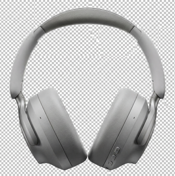 一副设计简约现代的头戴式耳机,主体为纯净的白色,耳罩外侧为光滑的白色圆形面板,头梁和耳罩内侧为浅灰色的柔软透气记忆棉材质,整体呈现出光滑细腻的哑光质感,置于简洁干净的浅色背景上,采用45度角倾斜的产品摄影构图,光线柔和均匀地照亮耳机表面,展现出清晰的结构线条和微妙的光影过渡,突出耳机的流线型轮廓和舒适的佩戴设计感,高品质产品渲染图,细节清晰,立体感强,简约而不失高级感。