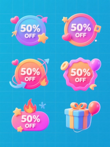 软3D风设计,可爱卡通元素,塑料质感图标,节日促销氛围。