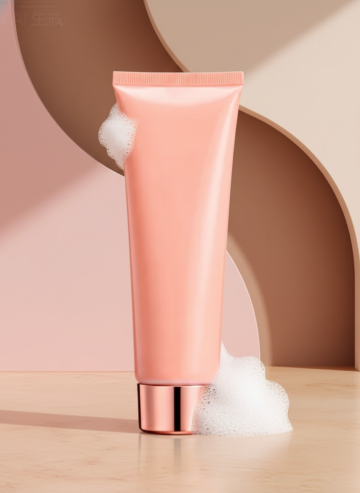 一个圆柱形或长方形的产品容器,具有光滑的现代感设计,采用完全不同于原图的配色方案,瓶身材质呈现出细腻的哑光质感,搭配金属质感的瓶盖,整体造型简约而富有高级感,背景为纯白色,光线明亮柔和,突出产品的轮廓和材质细节,营造出清新、时尚且专业的氛围。