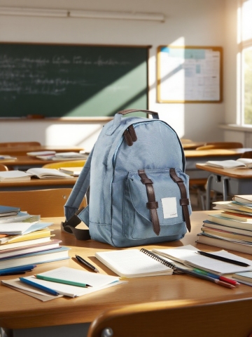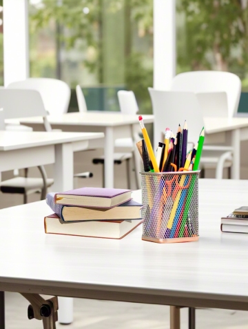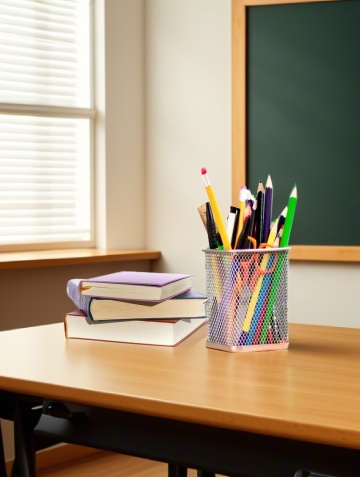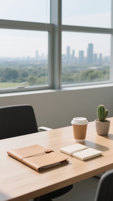 一个正在写字/整理文件的人,桌子上有笔记本、文件夹,传达“梳理信息、准备素材”。