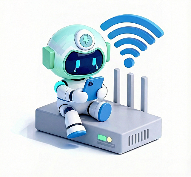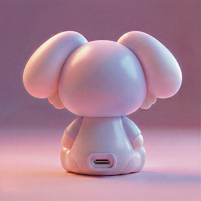 一个软萌的卡通机器人,整体采用柔和的蓝白色渐变3D设计,具有圆润的头部和身体轮廓,戴着大大的白色耳机,耳机外侧有粉色的发光圆环,方形的蓝色屏幕脸上有两个明亮的粉色圆形眼睛和一个微笑的弧线嘴巴,身体上有一个小小的粉色发光圆点,四肢短小可爱,呈现出友好招手的姿态,整体充满童趣和温馨感,光影柔和,边缘平滑,具有治愈系的可爱风格。详情