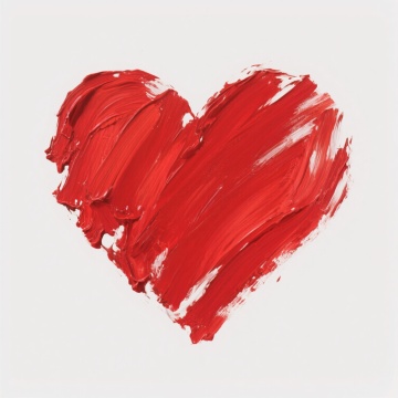 一颗巨大的、充满激情的红色心形图案,采用粗犷有力的油画笔触绘制,红色颜料厚重饱满,带有明显的刷痕纹理和白色的笔触间隙,整体呈现出热烈、奔放的艺术风格,背景为纯白色,心形位于画面中央,构图简洁大方,视觉焦点突出,具有强烈的情感冲击力和艺术表现力。