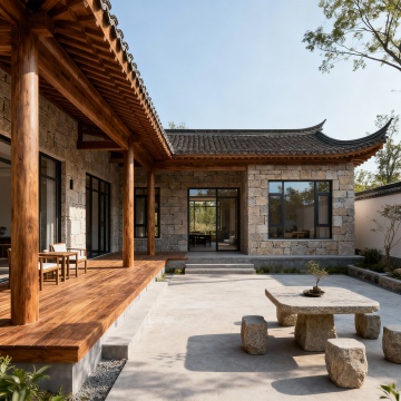 古典中式建筑,水墨风设计,红木与青瓦相映,庭院静谧,尽显东方韵味。