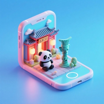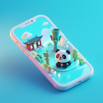 3D微缩艺术风,国潮元素融入手机设计,喜庆中式感庆祝75周年国庆。