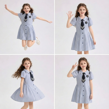 一位女性模特穿搭展示,身着白色短袖翻领衬衫,衬衫有胸前口袋和纽扣设计,搭配黑色中长款A字半身裙,脚穿米色运动鞋和白色中筒袜,右手自然下垂拿着一个棕色布面包袋,左手插在裙兜里,整体姿态自然放松。画面采用简约写实风格,背景为浅灰色纯色,光线柔和均匀,呈现出舒适、日常的穿搭氛围,色彩以黑白棕为主色调,和谐统一,突出服装的剪裁和质感。