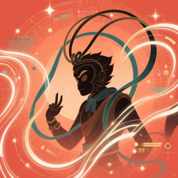以深邃暗蓝与墨黑为背景,中央爆发出炽热的橙红色与明黄色火焰漩涡,呈现出极具动感的流体形态,火焰中夹杂着飞溅的火星与燃烧的碎屑,整体营造出强烈的视觉冲击力与史诗般的震撼氛围。画面中融入哪吒的剪影元素,其标志性的发髻与混天绫轮廓在火焰的映衬下若隐若现,同时以龙纹剪影作为装饰,龙的鳞片与蜷曲形态与火焰的流动感相呼应,共同构成一幅充满力量与神话色彩的抽象火焰主题插画。