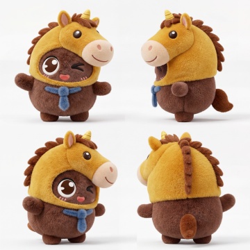 软3D粘土风小马,萌趣可爱,圆润造型搭配大眼微笑,节日氛围十足,适合儿童节或生肖主题设计。