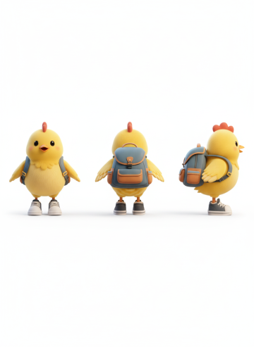 纯色背景下,六只造型相同的小鸡系列素材集合规整排布,每只小鸡具有不同材质:1. 毛绒质感,蓬松柔软,淡黄色;2. 光滑陶瓷,釉面反光,淡蓝色;3. 金属光泽,银色质感,带有金属拉丝纹理;4. 透明玻璃,晶莹剔透,淡粉色;5. 木质纹理,温暖自然,浅棕色;6. 塑料质感,光滑坚硬,翠绿色。整体画面色彩变换丰富,保持小鸡站立姿态,头部微侧,橙色尖嘴和爪子,背景为纯净的单一颜色,画面简洁干净,素材集合排列整齐有序。