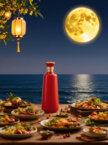 中式感梦幻浪漫,国潮风微缩艺术,水墨意境中秋夜宴。