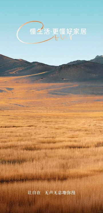画面上方是白色艺术字“秋日家居灵感季”,下面写副标题“把秋的温柔搬进家”,字的排版要灵动。中间呈现温馨家居场景,有木质餐桌、秋色系花艺、暖光灯饰、绒面抱枕,背景是布置好的客厅,色调是暖黄。